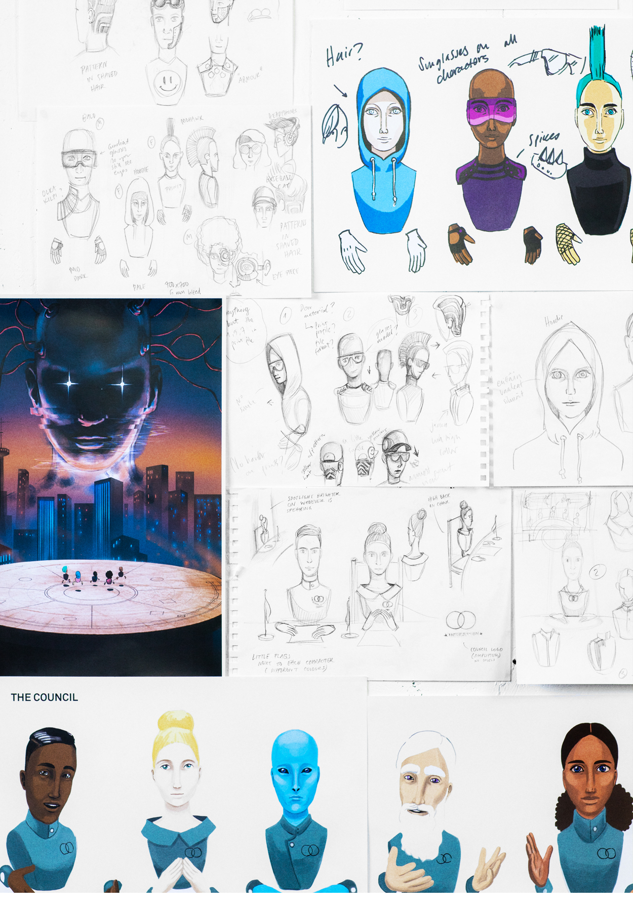 We created a visual world to take the players on an extraordinary trip. We took inspiration from cyber punk and art deco in the environments and characters, with a colour palette naturally derived from the Microsoft Brand Guide. Our soundscape – music, voice-overs and sound effects – were all specifically crafted to emphasise our storyline.