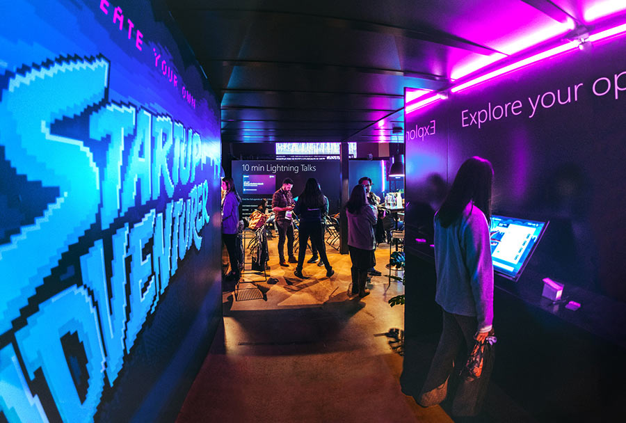 We produced an array of different physical assets for the event spatial branding. We also made the display content for all screens and the master presentation for the stage, utilizing the visual identity we created with the client.