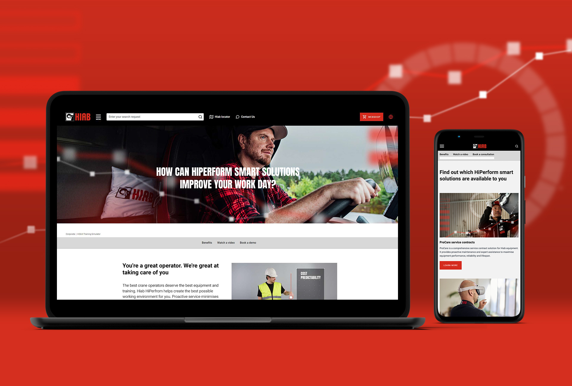 Hiab is famous for making machines that lift and move heavy loads. To make the most of the equipment, they have developed ever smarter services and solutions. Our task was to creatively package and launch the HiPerform brand as an umbrella for all of their smart solutions.